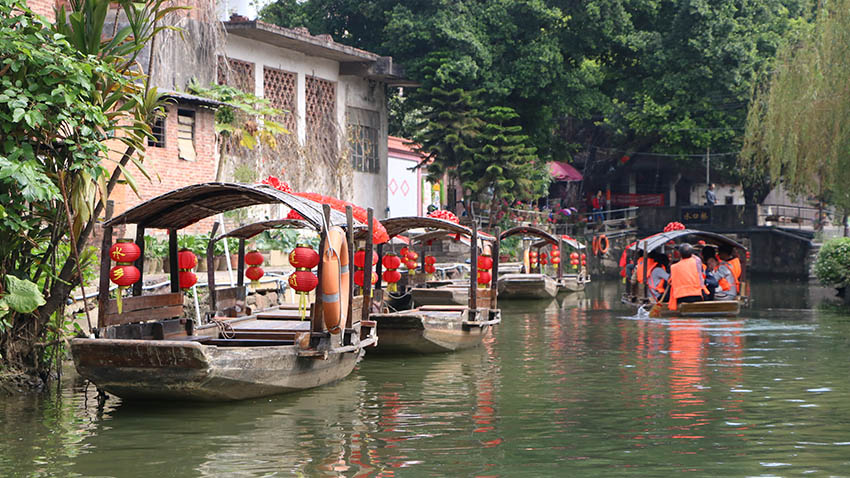 逢简水乡 位于顺德杏坛镇,被誉为“广东的周庄”,周庄虽美,但有点脂粉气,而逢简则是素净清纯的美女,让人不敢亵渎。广东逢简村荣获2013中国最美村镇”的“典范奖”。水乡水文资源极佳,绕村居水道逾10公里,辖区水道达28公里之多。游人泛舟荡漾碧波之中,大有曲折迂回无穷无尽之感。水乡至今远离都市喧嚣,空气清新宜人,与岭南古村格局相辅相成。而两岸古屋古树交错分布,石板街道纵横,通常只有村民三三两两经过,大有陶渊明诗句中“野外罕人事,穷巷寡轮鞅。白日掩荆扉,虚室绝尘想”的意境。