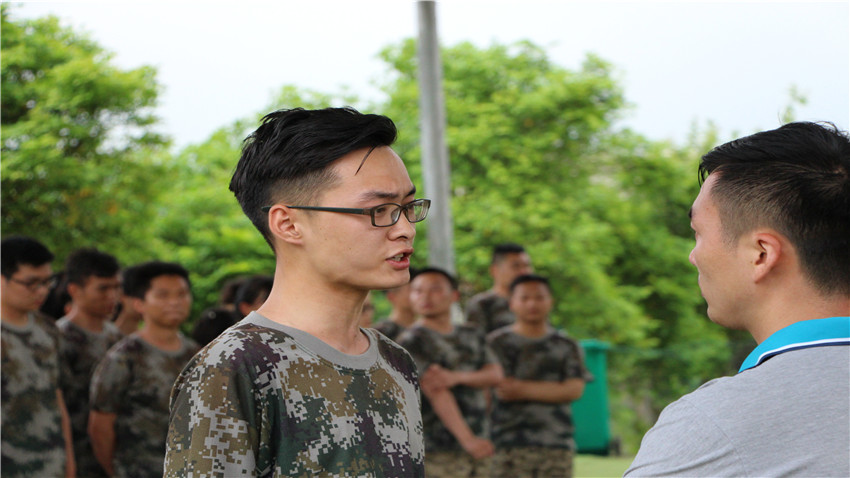 精英们刚一下车,就迅速集合整队来到了拓展训练基地的篮球场,换上了整齐的迷彩服,个个显得精神抖擞。而一天的拓展训练也正式拉开了序幕,首先迎接大家的是严苛而有序的军训环节,精英们在潘教练的带领下,军姿站的板板正正、有模有样。随后,广州搏翱拓展培训“金牌教练”丁教练正式出场,通过几轮简单的互动游戏,让学员们互动起来,让他们成为场上的焦点,用各种娴熟技巧去催化学员之间的感情,让学员们通过肢体接触在最短的时间内认识到身边更多的伙伴,同时,以小组为单位的团队组建也进一步加深了学员们的归属感与集体荣誉感,建立相互了解的基础与团队成员之间的信任,共同的口号、共同的目标、共同的方向,往往成为团队乘风破浪的不竭动力。